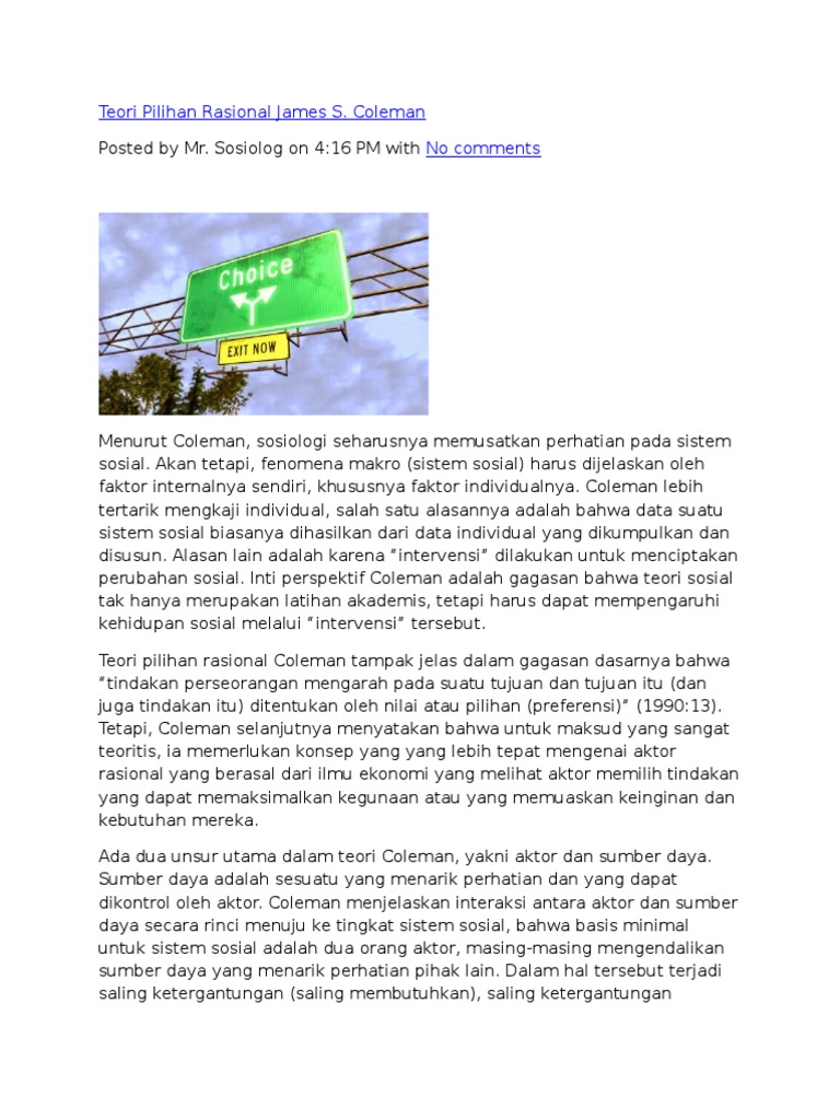 Teori Pilihan Rasional Pdf - Coleman adalah seorang sosiolog yang menerima gelar ph.d dari universitas columbia tahun 1995.